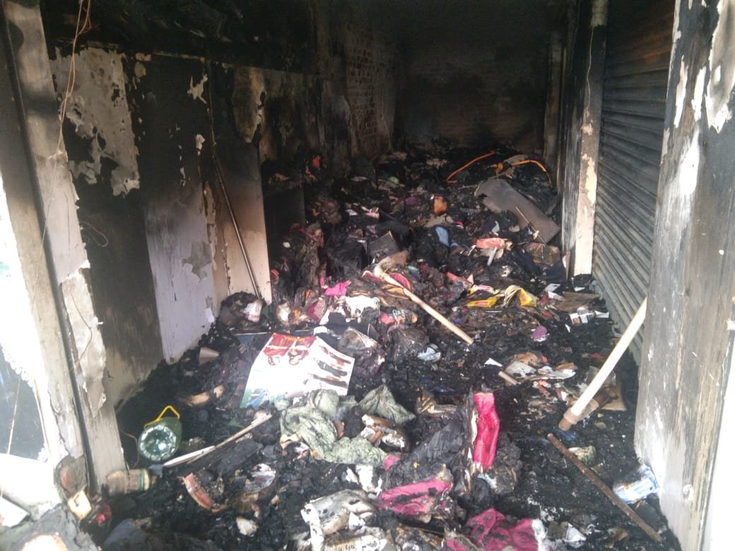 शाहगंज ।(सोनभद्र) स्थानीय बाजार में स्थित श्री संकटमोचन तिराहा पर नेहा साड़ी सेंटर के प्रतिष्ठान में बीती रात लगी भीषण आग से लाखों रुपए का सामना जल कर राख हो गया है। जिसमें दुकान का भवन भी क्षतिग्रस्त हो गया है।बताया जाता है कि बुधवार की रात दुकान बंद करके दुकानदार पूर्व की भांति अपने घर चला गया था। इसके बाद लगभग १० बजे रात दुकान में से अचानक धुआं और आग की लपेट निकलते देख राहगीर और आस पास-के लोग इकट्ठा हो गए। इस मंजर को देख लोगों ने पुलिस और फायर ब्रिगेड को सूचना दी। इस दौरान दुकानदार एवं फायर ब्रिगेड को आते -आते दुकान पूरी तरह जलकर खाक हो गई। बताया जाता है कि उक्त दुकान में बिजली के शार्ट सर्किट के चलते शायद आग लगी होगी। वैसे जो भी हो, दुकान में रखे इलेक्ट्रॉनिक सामान के अलावा लाखों रुपए के कपड़े एवं फर्नीचर जल कर राख हो गया है।
