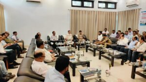 जिलाधिकारी सोनभद्र व पुलिस अधीक्षक सोनभद्र द्वारा संयुक्त रूप से एनटीपीसी शक्तिनगर में परियोजनाओं के अधिकारियों के साथ की गयी मीटिंग