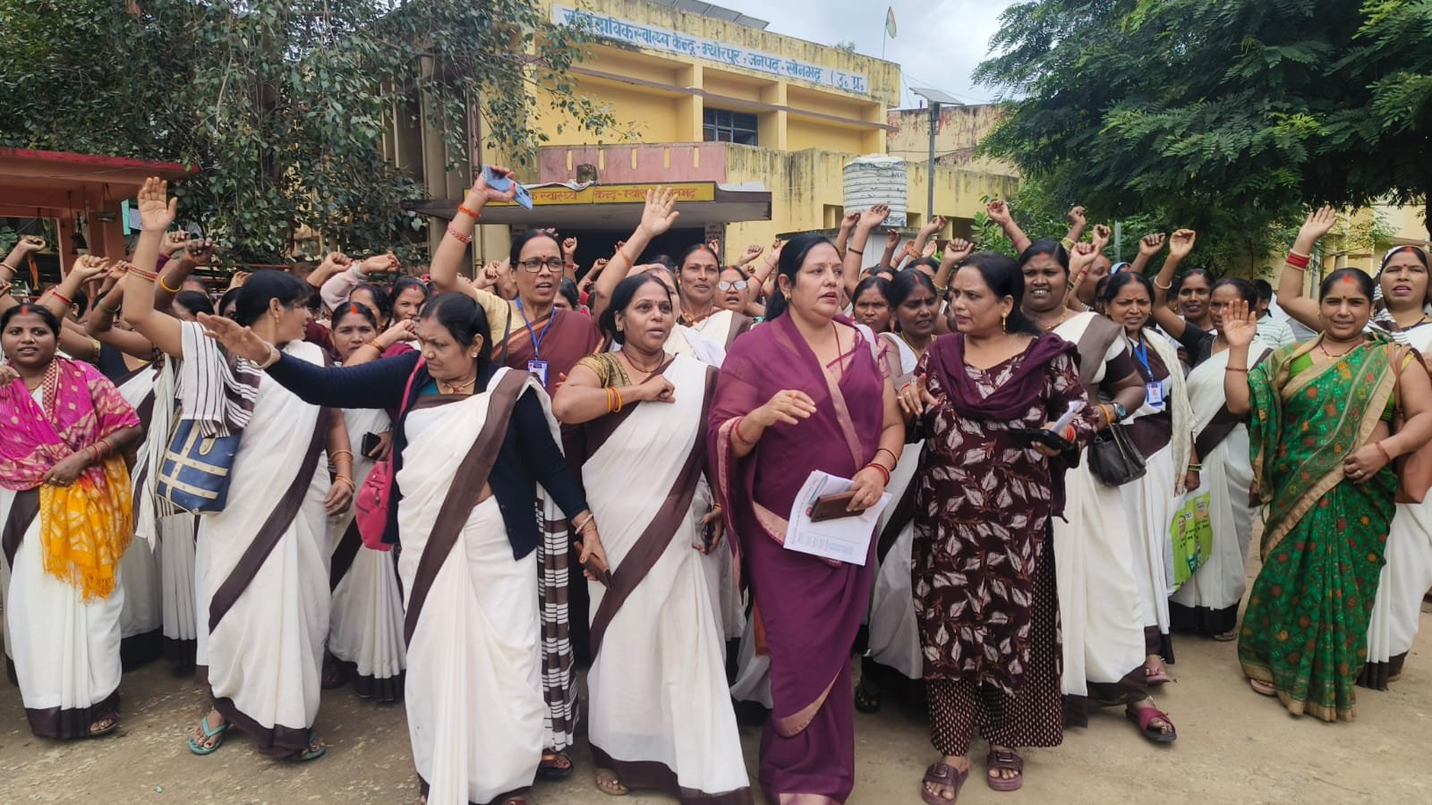 अपनी मांगों को लेकर आशा बहुओं ने किया कार्य बहिष्कार, दिया धरना