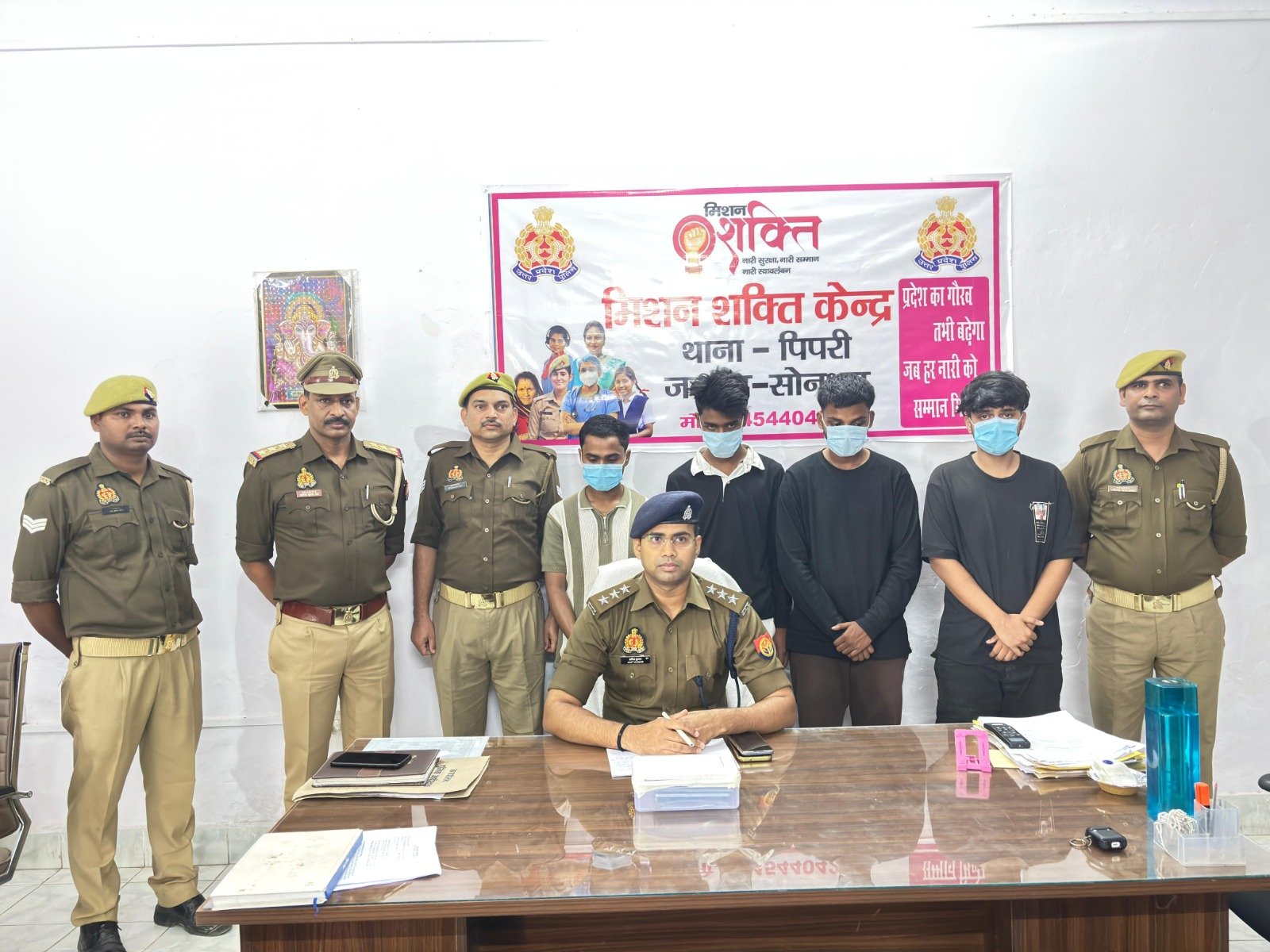 गिरफ्तार आरोपियों में आर्यन सिंह, अंगद सिंह, मोहम्मद आरिफ और मोहम्मद तौहीद वारसी सभी निवासी रेणुकूट शामिल हैं।